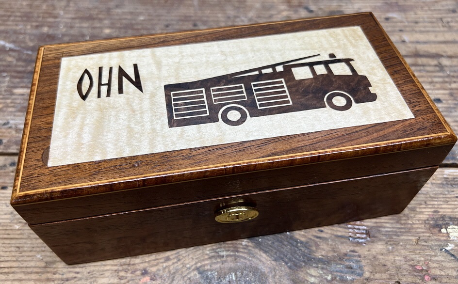 Some of our customers have been kind enough to send us photographs of their work. Some incorporate our bespoke marquetry or ready-made inlays, others are items made during or following tuition, or using our kits. Click any image for a closer view.