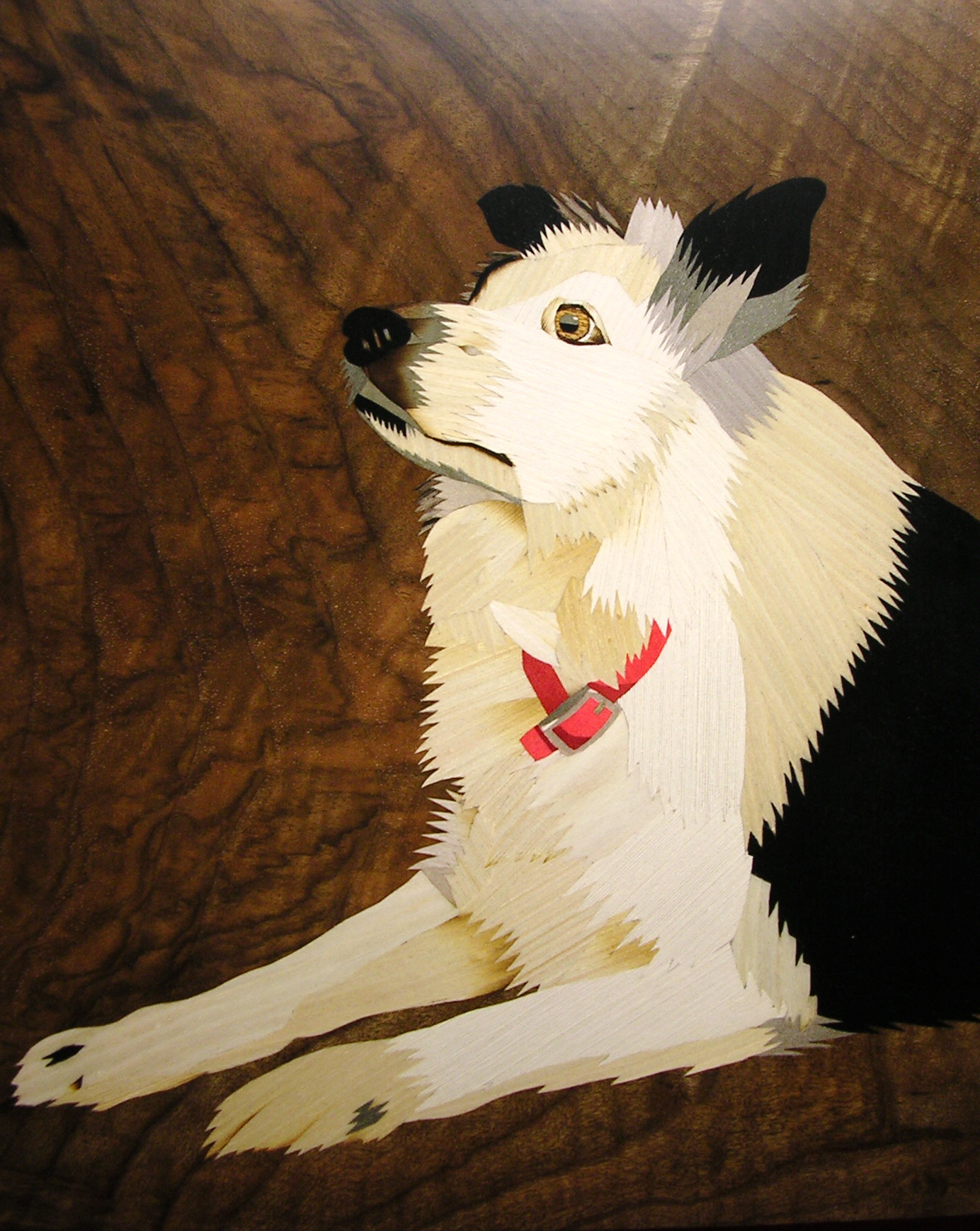 Working from your own photograph, your pet can be immortalised in exotic veneers. The resulting marquetry can be mounted as a picture, or applied to a box or clock.